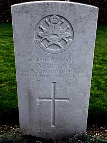 Grave marker to Private Arthur Briggs at Hersin Communal Cemetery Extension, Hersin-Coupigny in France who was shot at dawn on 19th July 1918. |