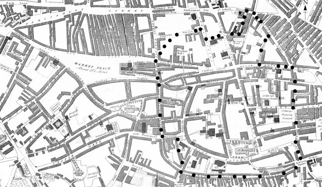 Central Nottingham in 1820 taken from Smith & Wild's map